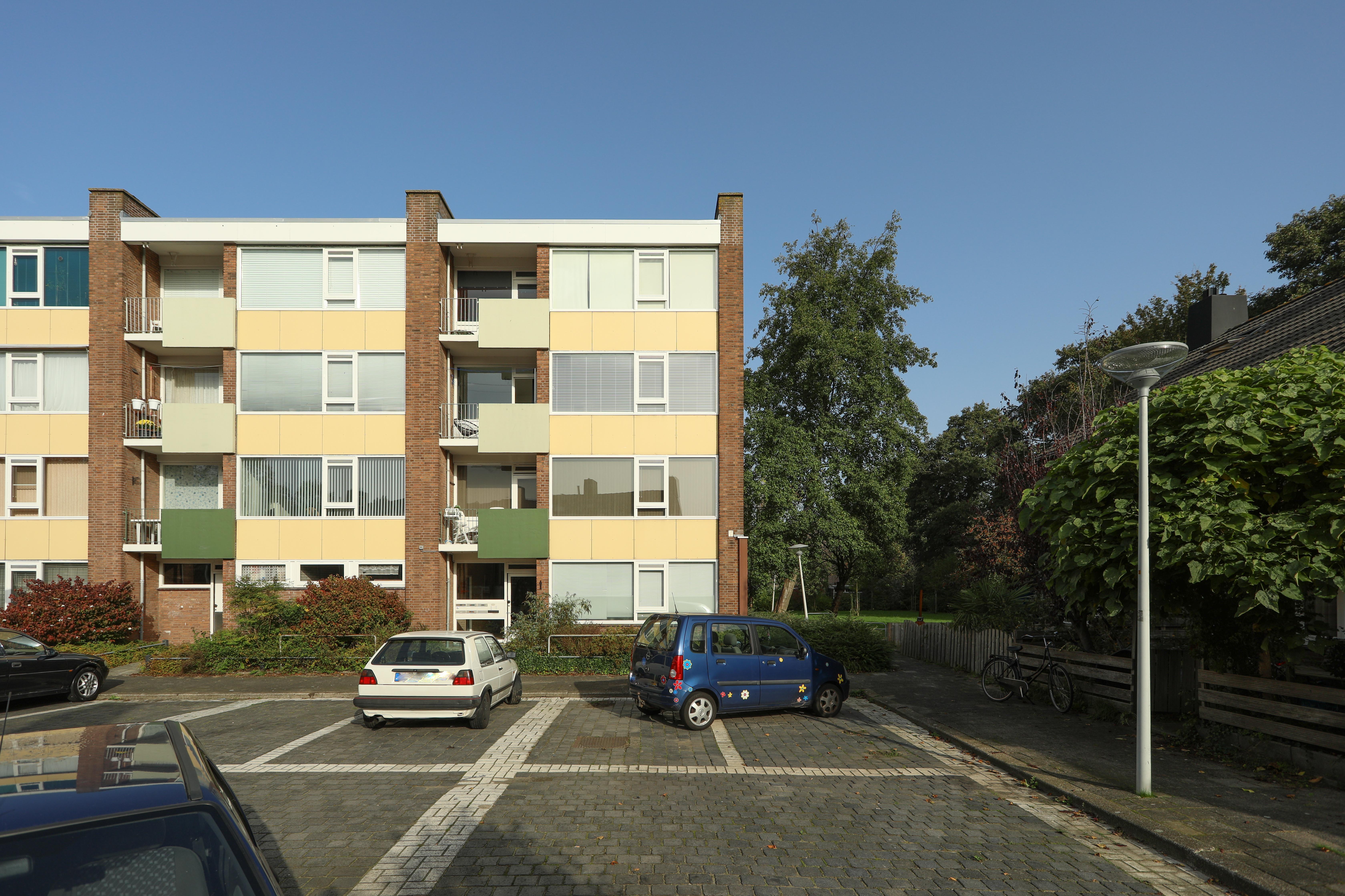 **Omschrijving:** Knusse 2 kamer portiekwoning gelegen in een doodlopende straat. De woning ligt aan de rand van Leiden, zwembad de Vliet en sportvelden. Op loopafstand van winkelcentra De Luifelbaan en Wagnerplein. **Indeling:** U komt binnen via het afsluitbare portiek van de centrale hal of de gemeenschappelijke fietsenberging. Vanuit de hal kunt u naar de keuken en de bijkeuken. Tevens kunt u via de woonkamer naar de 2 slaapkamers. Vanuit de grote slaapkamer kunt u naar het balkon. **Werkzaamheden:** De volgende werkzaamheden worden door de Sleutels uitgevoerd: nieuwe sloten in alle deuren, behalve portiekdeur; keuring gas, elektra en water, keukenrenovatie. De sleuteloverdracht en alle informatie op de plattegrond zijn onder voorbehoud.